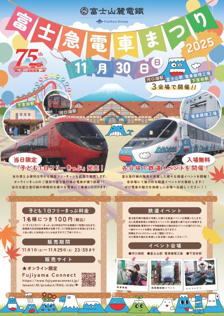 富士山六電鐵(富士急行線的運營商)將於2025年11月30日(星期日)舉辦“富士急列車節2025”,這是一項面向家庭的免費互動體驗活動。