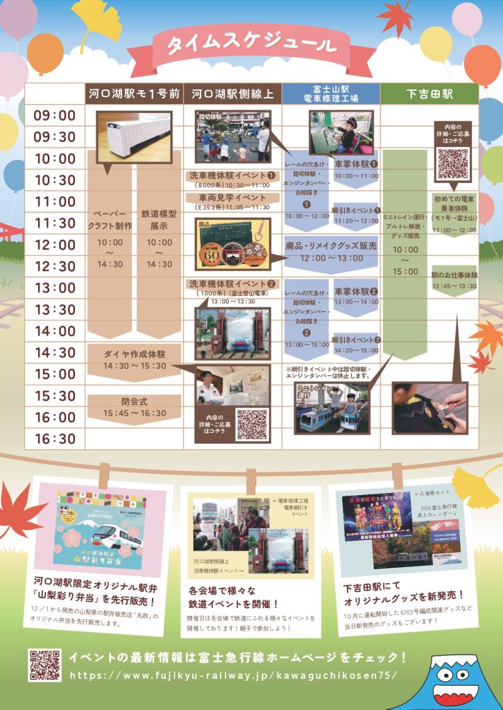 自2006年以來,列車節每年秋季舉辦,旨在幫助乘客更了解列車。然而,受新冠疫情影響,列車節自2020年起暫停舉辦,並改為預約制,分批舉辦。今年是河口湖線開通75週年,因此,時隔六年,列車節將首次以大型免費活動的形式回歸,讓孩子們也能樂在其中。